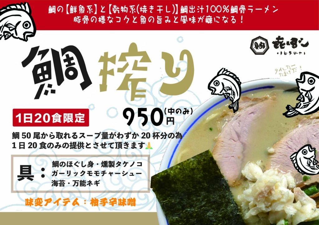 【㐂ぼし限定】1日20食限定!「鯛搾り」はじまりました!